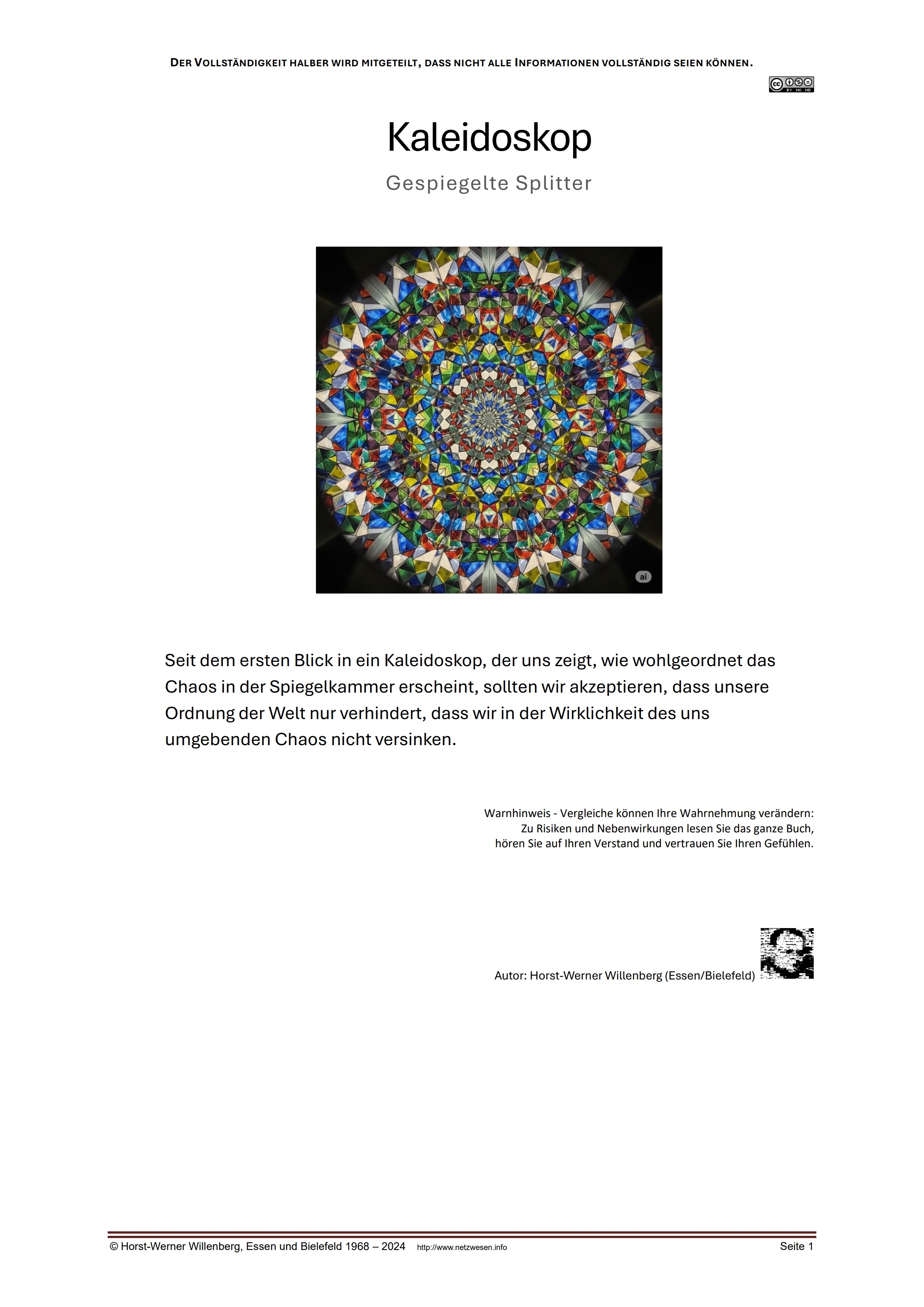 Seit dem ersten Blick in ein Kaleidoskop, der uns zeigt, wie wohlgeordnet das Chaos in der Spiegelkammer erscheint, sollten wir akzeptieren, dass unsere Ordnung der Welt nur verhindert, dass wir in der Wirklichkeit des uns umgebenden Chaos nicht versinken.